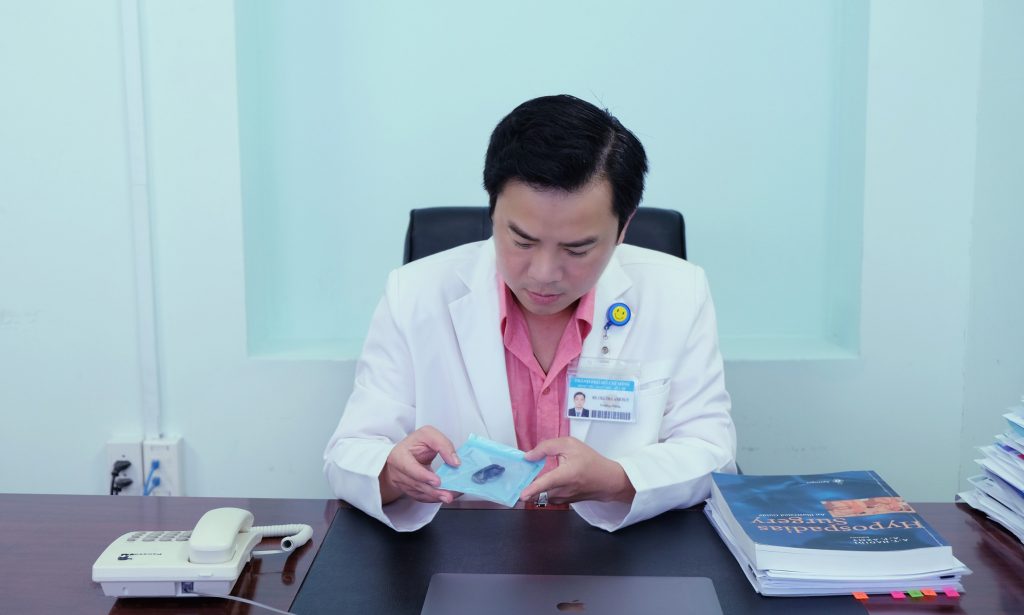 ThS.BS. Trà Anh Duy, qua nhiều năm kinh nghiệm phẫu thuật và tu nghiệp tại Hoa kỳ về tạo hình sinh dục nam và niệu đạo, cho biết thêm: “Người bệnh vừa có dị vật đường tiết niệu trên nền bệnh cảnh lỗ tiểu đóng thấp, lỗ tiểu không nằm ở đỉnh quy đầu mà ở mặt dưới của dương vật. Thông thường, những trường hợp này lỗ tiểu và đường tiết niệu nhỏ hơn bình thường nhiều nên rất ngạc nhiên là người bệnh có thể nhét cả một cuộn dây cước có kích thước lớn như vậy vào niệu đạo”.