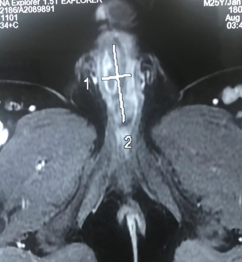 Được chuyển đến Bệnh viện Bình Dân với chẩn đoán viêm loét dương vật trên bệnh nhân có lỗ tiểu thấp thể dương vật. Anh T.H.N. cho biết hơn 10 năm nay, anh thường đi tiểu đau, cảm giác gắt buốt và nước tiểu đục, có lúc tiểu mủ. Vài tháng gần đây, tình trạng đau ngày càng trở nên tồi tệ hơn, người bệnh tiểu khó, da thân dương lở loét và đau đớn. Các kết quả chẩn đoán hình ảnh (như X-quang bàng quang – niệu đạo, siêu âm Doppler tinh hoàn – mào tinh, cho thấy hình ảnh một vật lạ chưa rõ bản chất đang nằm trong niệu đạo.