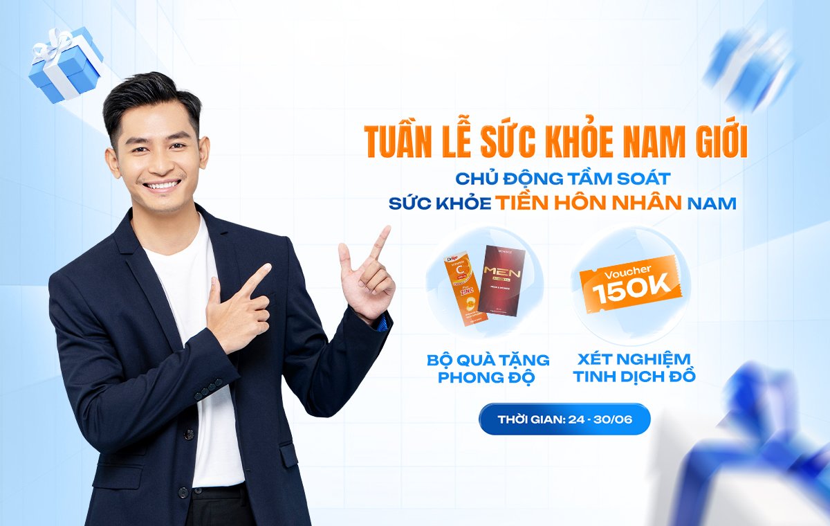 - Tặng VOUCHER 150K - giảm trực tiếp trên chi phí dịch vụ XÉT NGHIỆM TINH DỊCH ĐỒ hoặc GÓI XÉT NGHIỆM TIỀN HÔN NHÂN NAM