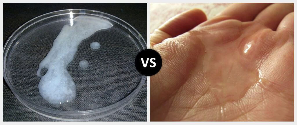Tinh dịch loãng (bên phải) với rất ít tinh trùng bên trong