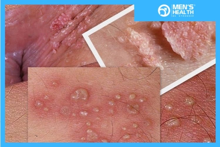 Đối với nam giới: Chủ yếu là các sang thương nổi trên bề mặt ở thân dương vật, lỗ sáo và có thể lan ra vùng mu, bìu, lỗ hậu môn hay các vùng lân cận khác. Ban đầu chỉ là sang thương kích thước vài mi-li-mét nổi gồ trên bề mặt da, sần sùi màu hồng nhạt, không đau không ngứa. Sau đó, các nốt sùi lan sang vùng lân cận và phát triển to lên nhìn giống như mào con gà hoặc súp lơ. Có những trường hợp sùi mào gà phát triển to đến hàng chục xen-ti-mét, tiết dịch mủ, máu và đau do bội nhiễm.