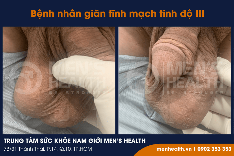 Thực hiện thăm khám lâm sàng kỹ lưỡng, bác sĩ Tâm đánh giá bìu 2 bên chảy xệ, nhiều tĩnh mạch nông hằn lớn trên bề mặt da, sờ nắn thấy các búi tĩnh mạch dãn to như búi giun. Ngoài ra, hai tinh hoàn hai bên ở giới hạn dưới, thể tích tầm 10-12ml và khá mềm, khá với thực tế là hai tinh hoàn thường phải săn chắc.