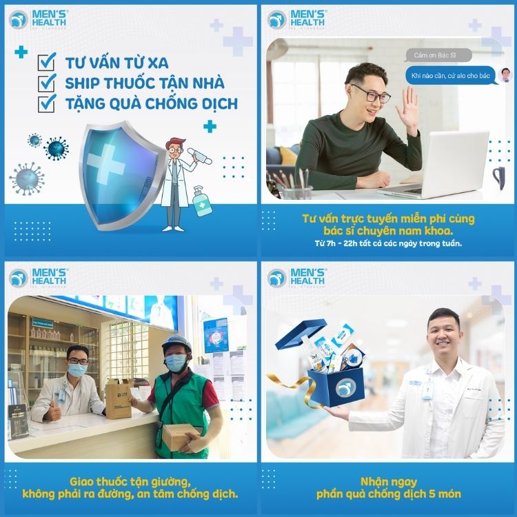 Bên cạnh đó, nhằm giúp các đấng mày râu an toàn chống dịch, an tâm sức khỏe. Men's Health triển khai "TƯ VẤN TỪ XA - SHIP THUỐC TẬN NHÀ". Bác sĩ sẽ tư vấn các dấu hiệu bệnh lý thông qua hotline bác sĩ: 0939 906 999. Sau đó, bác sĩ cấp toa thuốc và soạn thuốc gửi SHIP COD tận nhà cho khách hàng.
