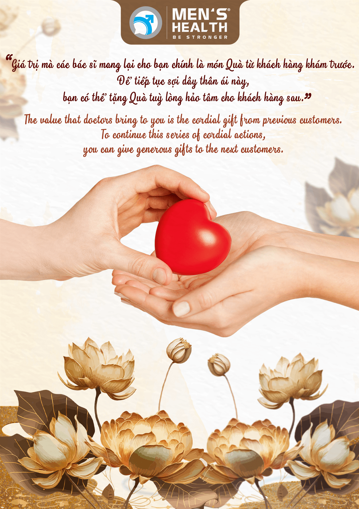 💟 Cụ thể, khi đến khám tại Trung tâm, chi phí khám của bạn luôn được khách hàng trước thanh toán giúp. Và nếu muốn, bạn có thể thanh toán lại cho khách hàng tiếp theo, cứ tiếp nối như vậy tạo nên một sợi dây thân ái của tất cả chúng ta. Không chỉ dừng lại ở mỗi khách hàng, sự sẻ chia này còn được gửi trao đến những người có hoàn cảnh khó khăn, những mảnh đời kém may mắn trong các hoạt động thiện nguyện của Men’s Health.